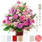 フラワーギフト 電報 「豪華な季節のアレンジ」 紙素材カード電報セット お祝い 花 祝電 結婚式 誕生日 クリスマス 2025 叙勲 受章祝い 開業 開店