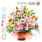 フラワーギフト 電報 「豪華なユリのアレンジ」 プレミアムカード電報セット お祝い 花 祝電 結婚式 誕生日 クリスマス 2025 叙勲 受章祝い 開業 開店