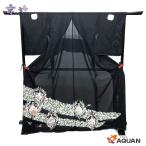 セール アウトレット展示品 京やN074 正絹 反物 仮絵羽 絽 黒留袖 牡丹 菊 季節の花 雀 夏着物 正装 夏の黒留袖 未仕立て 新古品