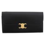 セリーヌ ラージ ウォレット トリオンフ 長財布 10E313DPV.38NO レディース カーフ ブラック/ゴールド金具 中古
