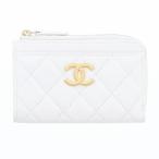 シャネル マトラッセ フラグメント カード コインケース AP4478 レディース キャビアスキン/キャンバス ホワイト/ピンク 中古