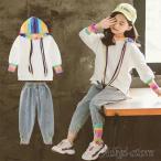 子供服 女の子 2点セット 長袖トップス +デニム 長ズボン スウェット上下セット フレア 子ども服 春秋 キッズ用 学生服 ジュニア 上下 セット 韓国子供服