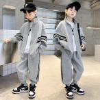 男の子 セットアップ カジュアル ジャージ 上下セット キッズ スポーツジャケット+パンツ 学生 ジュニア服 運動着 お出かけ ブラック グレー 春着 秋着 110-160