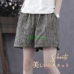 ショートパンツ レディース ハーフパンツ ウエストゴム 綿麻 短パン 半ズボン ゆったり ストライプ柄 カジュアル 通気性 着?せ キレイめ 通学