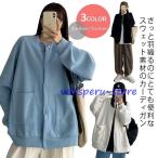 スウェットカーディガン ゆったり クルーネック レディース ボタン 羽織り 薄手 綿 スクールカーディガン 女子 制服 学生服 アウター 秋 冬 春
