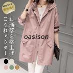マウンテンパーカー レディース トレンチコート 春秋アウター ブルゾン フード付き 羽織り ジャケット 裏地あり ミディアム丈 ライトコート