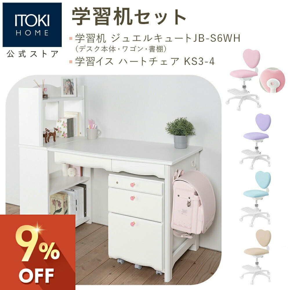 学習家具セット ( 学習机 + 学習チェア ) イトーキ ジュエルキュート ユニットデスク 書棚 ワゴン 勉強机 学習デスク 回転チェア ITOKI jewelcute JB-S KS3 ホワイト 女の子 ガーリー かわいい 送料無料 パステル