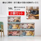 収納ボックス 折りたたみコンテナ 収納ケース 押し入れ収納 キャスター付き 衣類収納 蓋付き 大容量 折り畳み オフィス 車用 56L 横開き クローゼット 2個セット