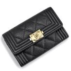 (美品)CHANEL シャネル A80603 ボーイシャネル マトラッセ フラップ キャビアスキン ブラック カードケース 名刺入れ 定期入れ パスケース レザー