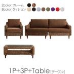 (タイムセール中) ソファーセット 1人掛け+3人掛けソファー2点+テーブル おしゃれ アジアン家具 リゾート バリ風 グランピング 応接・ロビー 高級 アバカ