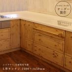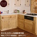 クラシック キッチン L型 W2050 W1800 オーダー家具 サイズ変更可能 北欧 無垢 木製 パイン材 収納 メラミン 天板 ステンレス
