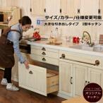 カントリー キッチン 42 W3000 I型 オーダー家具 サイズ変更可能 北欧 無垢 木製 パイン材 収納 人造大理石 天板 ステンレス