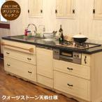 【クォーツストーン天板】カントリー キッチン 48 W2400 I型 オーダー家具 サイズ変更可能 北欧 無垢 木製 パイン材 収納 人造大理石 天板 ステンレス