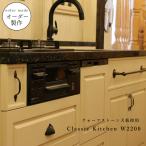 クラシック キッチン W2550 I型 オーダー家具 サイズ変更可能 北欧 無垢 木製 パイン材 収納 人造大理石 天板 ステンレス オリジナルキッチン