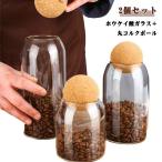 ガラス保存容器 ボールコルク付き 2個セット 円型コルク ガラス 透明 保存容器 密封缶 穀物 食品貯蔵容器 食品 ガラス瓶 耐熱ガラス コーヒー豆