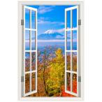 ウォールステッカー 窓枠 富士山 紅葉 日本製 MU3 壁紙 シール 木々 秋 風景 景色 北欧 旅行 写真