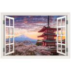 富士山 桜 五重の塔 窓枠 日本製 MU3 ウォールステッカー 壁紙 シール 自然 写真 ポスター