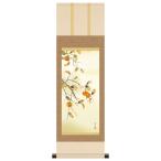 10年保証 掛け軸 ミニ掛け軸 和風 花鳥画 秋掛け 柿に小鳥 北山歩生 モダン 掛軸 床の間 和室 おしゃれ 壁掛け 絵