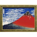 葛飾北斎の名画 富嶽三十六景 凱風快晴(赤富士) アートポスター〔木製ゴールド色フレーム付〕〔新品〕 TXA-012G