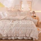 4点セット 寝具カバー 掛け布団カバー 布団カバー マットレスカバー おしゃれ ベッド カバー ダブル ダブル フリル レース 姫系