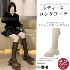 ロングブーツ レディース ロング丈 ファスナー付き 寸胴 ブーツ ラウンドトゥ シューズ 厚底 PU 美脚 おしゃれ 履きやすい 歩きやすい