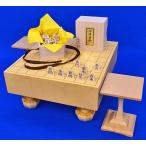 将棋セット 新桂3寸足付将棋盤と黄楊特上彫り駒錦旗と駒台のセット