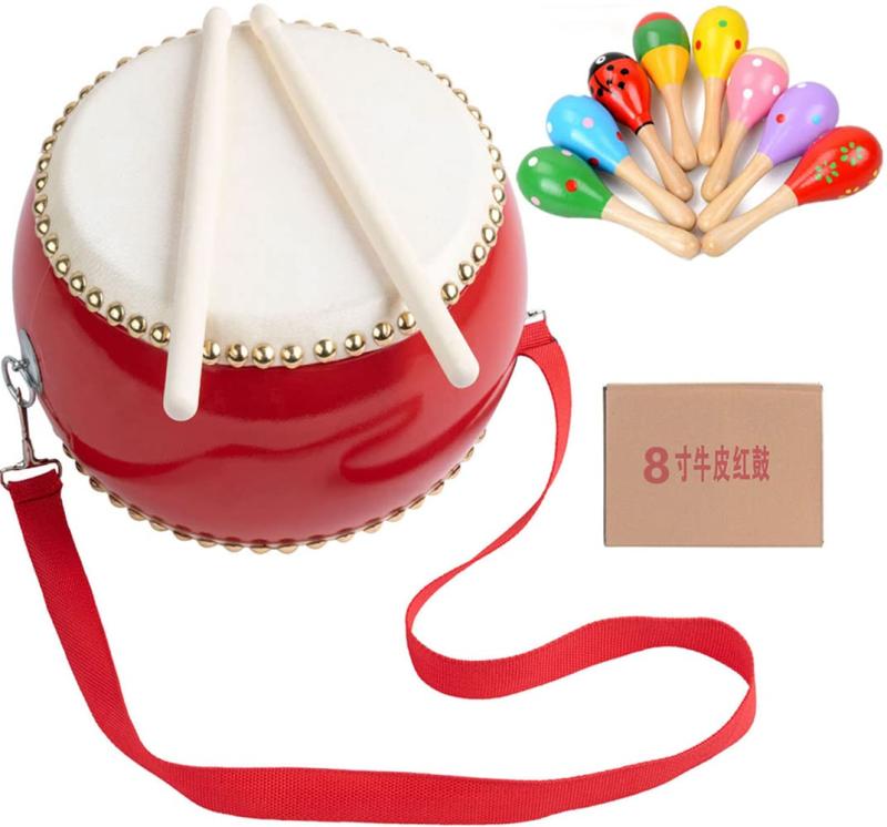 太鼓 おもちゃ 小太鼓 バチ2本 ショルダーベルト付 子供 キッズパーカッション 太鼓練習 盛り上げ太鼓 本格牛革張/和太鼓 打楽器 演奏 持ち運びにも便利 子供 キッズ(直径 20cm)
