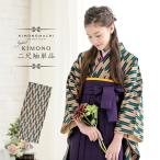 卒業式 袴セット 大学生 小学生 レトロ「緑×ベージュ 矢羽」 洗える 着物 袴 袴下帯 二尺袖 袴用着物 購入 レディース 女の子 女子 小学校