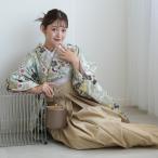 袴 レンタル 卒業式 2尺袖着物 袴 17点セット ひよこ商店 古典柄 レトロ アンティーク系 花 グリーンの小梅雲取