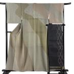 美品 訪問着 身丈156.5cm 裄丈66cm M 袷 名古屋帯セット 落款あり 麻の葉 小梅 茶緑色 正絹 秀品 中古
