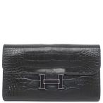 エルメス 長財布 コンスタンス コンスタンス ロング アリゲーター ブラック ブラック 黒 パープル ラッカー金具 クロコ 二つ折り財布 T