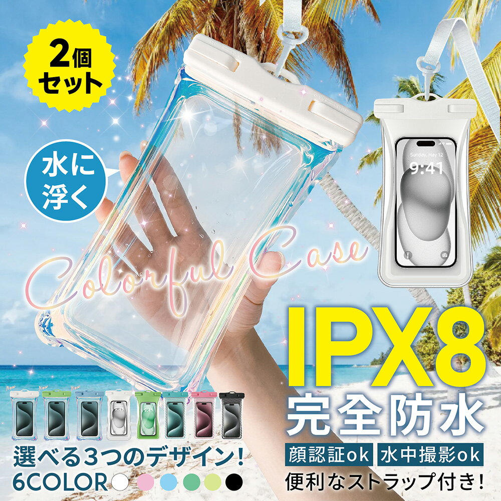 【5%OFFクーポン対象】【2枚セット】スマホ 防水ケース ショルダー 防水ケースiPhone 防水ケース スマホ 水中撮影 小物入れ 防水携帯ケース 防水ポーチ スマホ防水ケース 浮く IPX8防水 カバー ストラップ付き 水中撮影 お風呂 海水浴 水泳 海の中 夏クリア