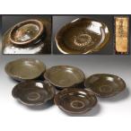 【源・S】《桃山期》古唐津 印花文 花弁形 小皿 五客揃い/古箱入