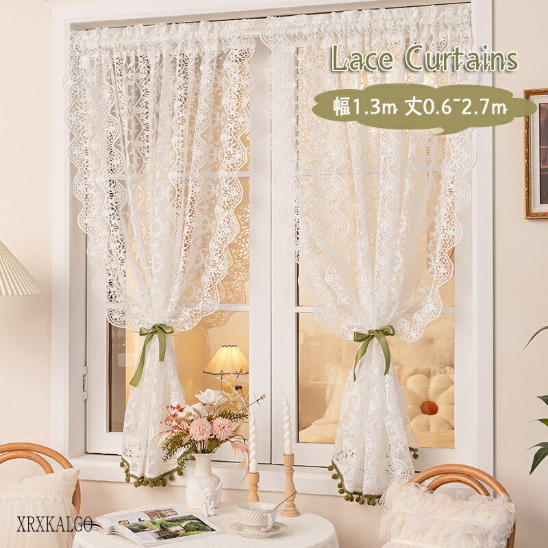 「10%OFFスーパーセール」間仕切りカーテン カフェカーテン 幅130cm 丈50~260cm のれん 小窓用 カーテン レース 緑の毛玉 刺繍 白 小花 カーテン 目隠し ドア バスルーム 洗面所 キッチン 模様替え 新生活 かーてん