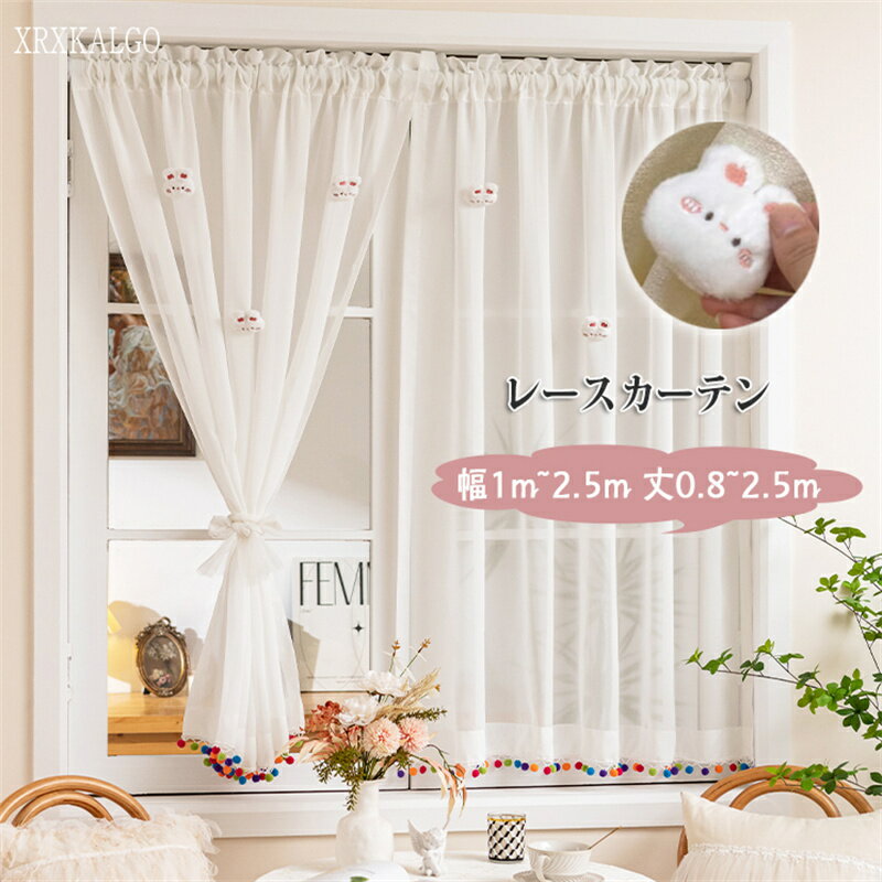 「10%OFFスーパーセール」間仕切りカーテン カフェカーテン 幅100 150 200 250cm 丈100~250cm のれん 小窓用 カーテン レース 毛玉 ウサギ レースカーテン 目隠し ドア バスルーム 洗面所 キッチン 模様替え 新生活 かーてん