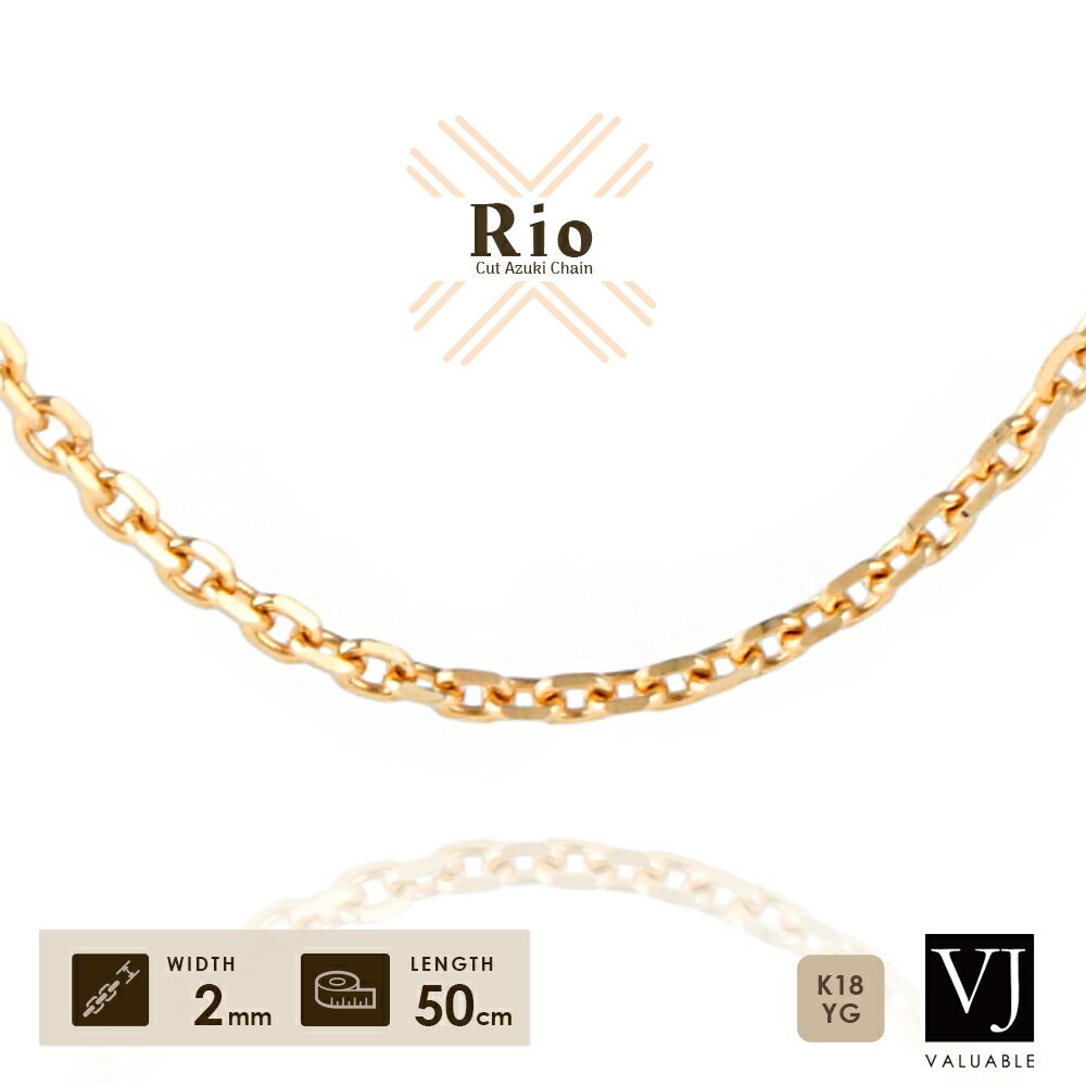 18金 ネックレス 18k メンズ レディース イエローゴールド 「 4面 ダイヤモンド カット Rio アズキ チェーン 2mm 幅 50cm(アジャスター管で45cm使用可) 」[ k18 定番 シンプル 18k 小豆 あずき ブランド アメリカ イタリア ジュエリー 1.5 2.1 2.2 1.9 男性 人気 ]