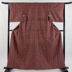 美品 紬 身丈162.5cm 裄丈65cm M 袷 証紙あり 縞 幾何学 花織 小豆色 正絹 逸品 中古 在庫一掃