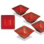 九谷焼 スミ切 四角小鉢 細華(赤)5個セット / 中川眞理子 | 小鉢セット 人気 ギフト 贈り物 結婚祝い ギフトサービス無料 化粧箱入り