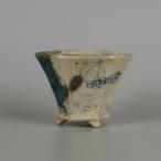 【中古】盆栽鉢 大助 小鉢 長辺 約6.3cm 六角鉢 下帯 海 波 舟 絵鉢 箱付 観賞用 現品 中古鉢