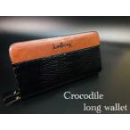 長財布 財布 レザー クロコダイル 札入れ 小銭入れ ダブルジップ ラウンドファスナー 大容量 メンズ 茶色 ブラウン ツートン おしゃれ
