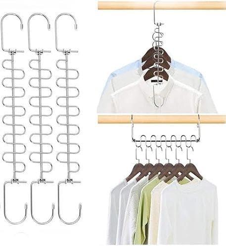6個セット衣類収納ハンガー, BetterJonny 13連 縦に掛ける 縦型便利 省スペース リンクチェーン ステンレス ハンガー収納力アップハンガー 多機能 室内 屋外収納・整理用折り目防止 バッグ収
