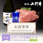 ふるさと納税 お食事券 要来店 山形牛 肉 すき焼きコース 4人前 十四代別選(純米大吟醸720ml) 和牛 国産 日本酒 an-gnrjx4 山形県村山市