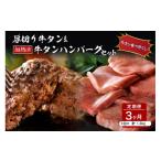 ふるさと納税 牛肉 タン 山形県 河北町 味付き厚切り牛タン3種食べ比べ約600g/山形牛入り牛タンハンバーグ5個セットの牛タンづくし 3ヵ月定期便 ka007-069a00…