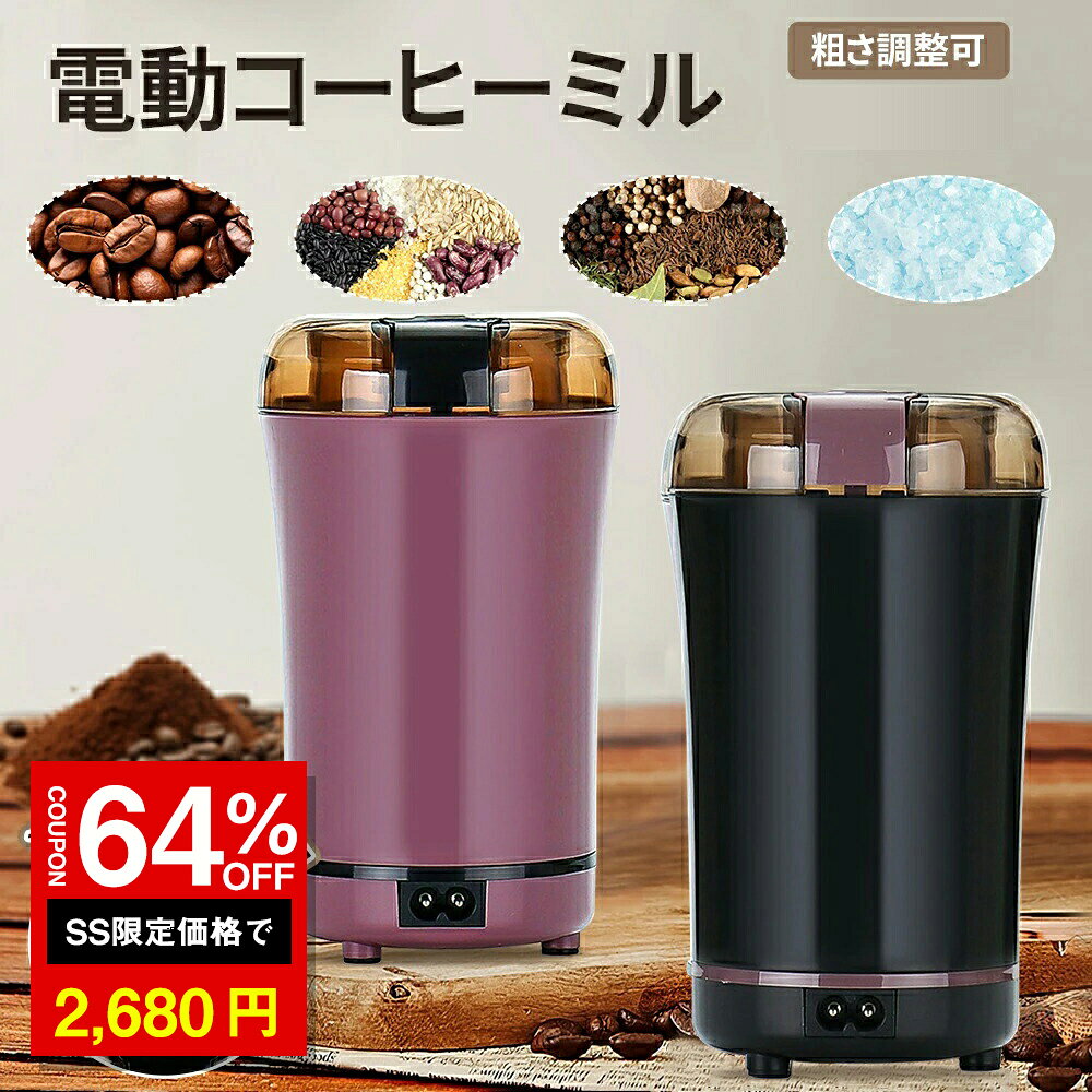 \SS激安/★62%OFF→2850円★コーヒーミル 電動 カッター コーヒーグラインダー 粉ひき器 家庭用 小型ミル コーヒー豆 ひき機 豆挽き山椒調味料★穀物を挽く 一台多役 掃除ブラシ付 お手入れ簡単 電動コーヒーミル 母の日 プレゼント