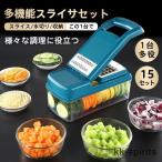 スライサー 1台多役 多機能 野菜カッター 調理器セット せん切り器 時短料理 千切り 薄切り 水切り皿 果物 野菜 細切り 太切り 厚さ切り おろし