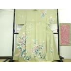 平和屋本店●極上 本加賀友禅作家 宮野勇造 訪問着 菊に山菜花 若芽色地 上代138万 反端・紙タグ付き 逸品 未使用 DZAB2548kh6