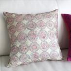 カンタ刺繍 シルク クッションカバー44×42cmピンク サークルパターン