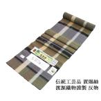 紬 正絹 伝統工芸品 置賜紬 渡源織物謹製 米沢絣 横段 縦縞 反物 着物 新品 未仕立 d2028