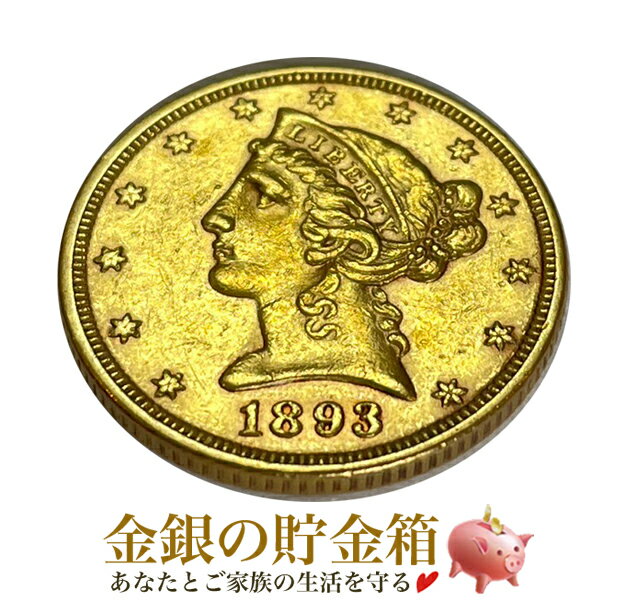 『アメリカ リバティヘッド 5ドル 金貨 アンティーク 1893年製 クリアケース付き』金貨 ゴールド コイン 原産国 アメリカ 約8.24gの金貨 品位:90.0% Gold 中古品 ヴィンテージ Vintage Antique 米国 USA Coin《安心の本物保証》【保証書付き・巾着袋入り】