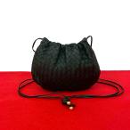 極 美品 BOTTEGA VENETA ボッテガヴェネタ イントレチャート レザー 本革 巾着 ミニ ショルダーバッグ ポシェット ブラック 25125